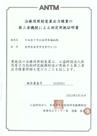 ・治療用照射装置出力線量の第三者機関による測定実施証明書