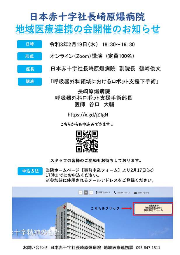 医療関係者の皆様のご参加をお待ちしております。参加ご希望の方は、当院ホームページの申込みフォームよりお申し込みください。