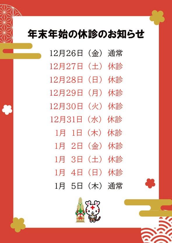 年末年始(12月29日~1月3日) 日本赤十字社創立記念日(5月1日)