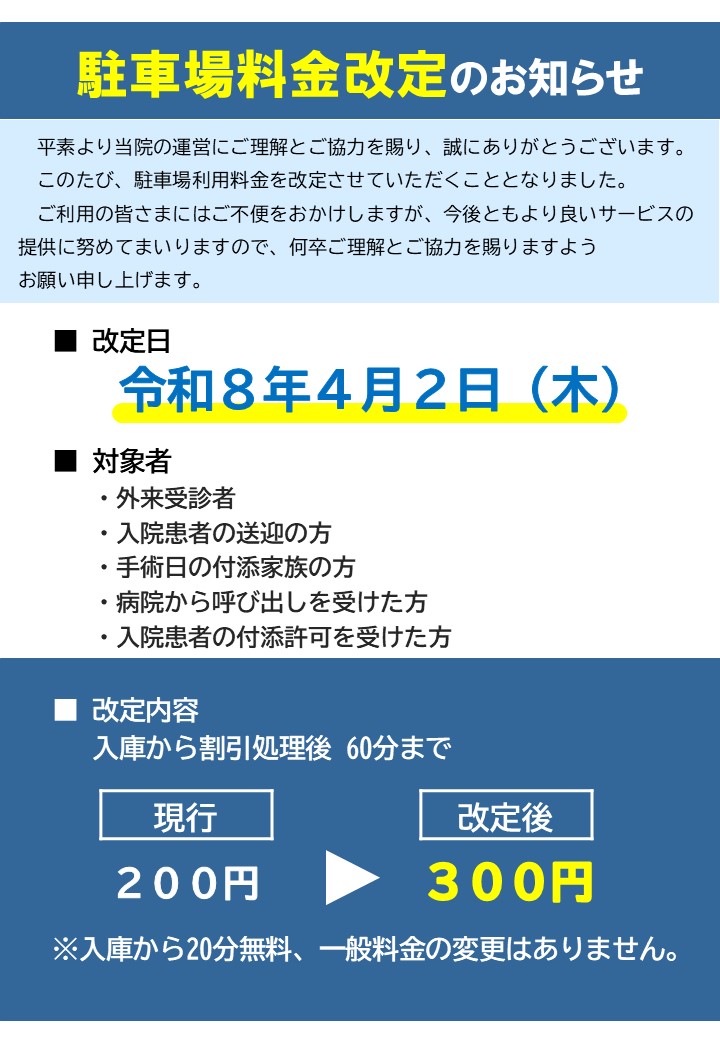 平素より当院の運営にご理解とご協力を賜り、誠にありがとうございます。