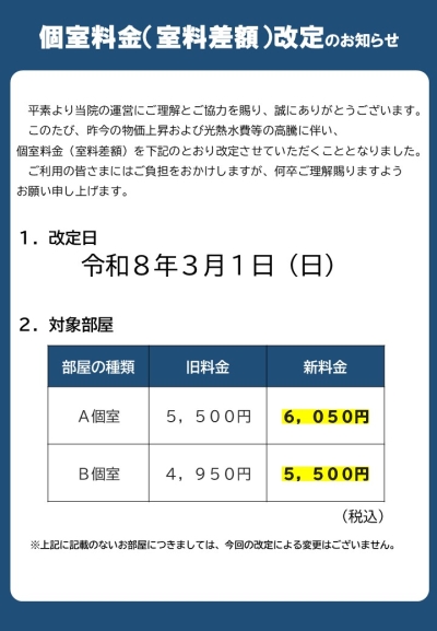 • 個室料改訂のお知らせ