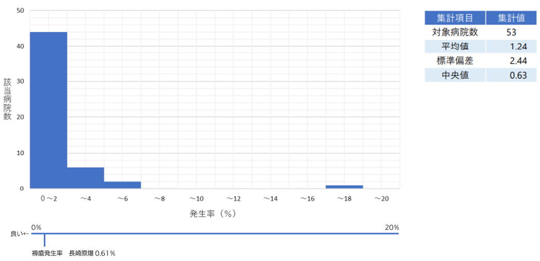 褥瘡の発生は、患者の生活の質(QOL)を低下させる要因となり、在院日数の長期化にもつながります。患者の栄養状態等によっては褥瘡が発生しやすい状況もありますが、褥瘡対策チームとも協力し、計画に基づいた適切な褥瘡予防対策を実施し、発生率を低下させることが求められます。褥瘡予防対策は、提供されるべき医療の重要な項目であり、栄養管理、日常ケアの質評価に関係します。